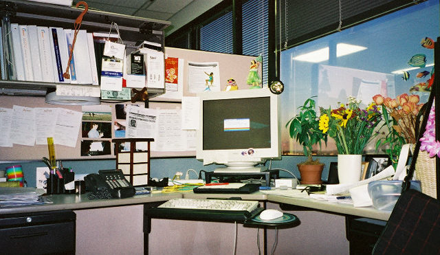 my desk at work, decorated with CSA flowers
